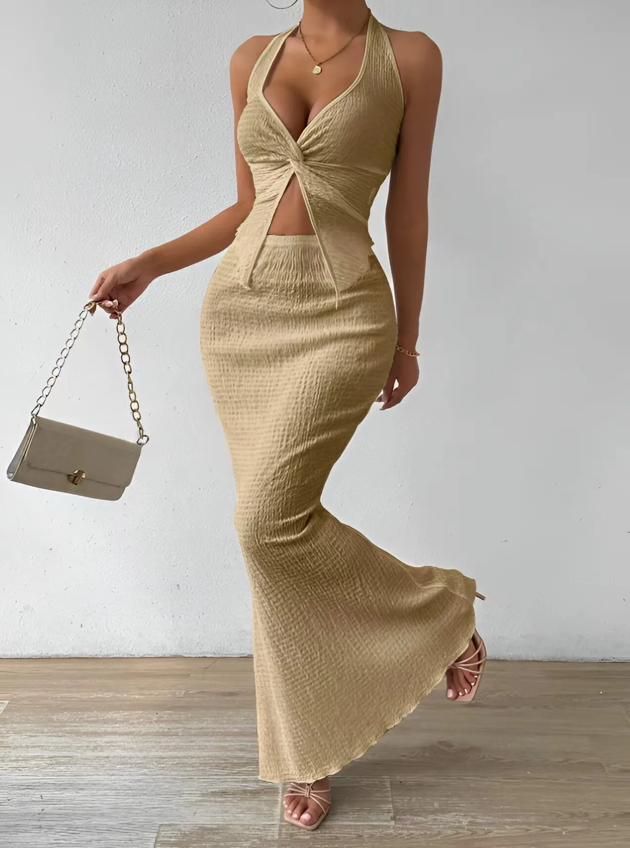 ✨ Elegant & Sexy Summer/Fall Two-Piece Set – Halter Top & Long Skirt 2025